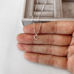 Colar pingente letra C cravejada 6mm 40cm | Mya Prata