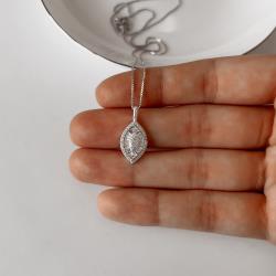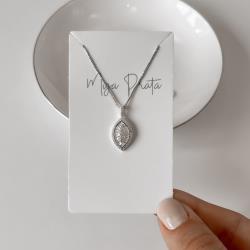 Colar pingente folha cravejada 16mm 45cm | Mya Prata