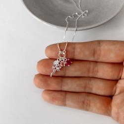 Colar entremeio círculo pingentes rosa, zircônias rosê e cereja v12 45cm | Mya Prata