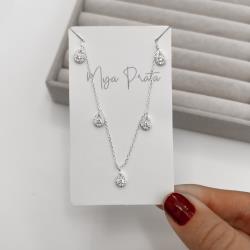 Colar pingentes gotas cravejadas 7mm 40+5cm | Mya Prata