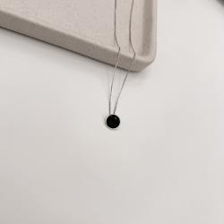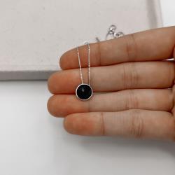 Colar pingente círculo ônix resina 10mm 45cm | Mya Prata