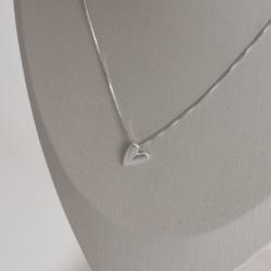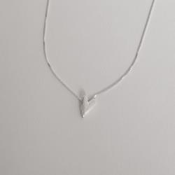 Colar pingente coração alongado de lado riscado 12mm 45cm | Mya Prata