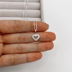 Colar pingente coração vazado com cravejado 10mm 40cm | Mya Prata