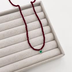 Choker cristal marsala 3mm pingente zircônia coração turquesa 6mm 40+5cm