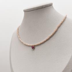 Choker cristal perolado 3mm pingente zircônia coração rubi 6mm 40+5cm | Mya Prata