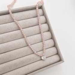 Choker cristal rosa irisado 4mm pingente zircônia coração cristal 8mm 40+5cm | Mya Prata