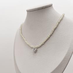 Choker cristal bege irisado 4mm pingente zircônia coração cristal 8mm 40+5cm | Mya Prata