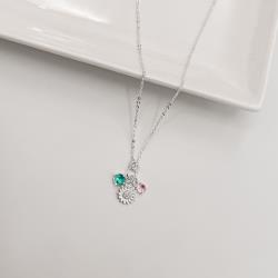 Colar entremeio círculo pingentes flor, zircônias rosa e acqua corrente cadeadinho 40+5cm | Mya Prata