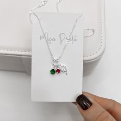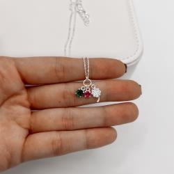 Colar entremeio círculo pingentes trevo cravejado, zircônias cereja e esmeralda corrente cadeadinho 40+5cm | Mya Prata