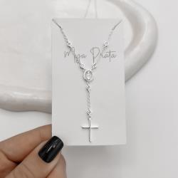 Colar Nsa. Sra. Aparecida terço com zircônias 45cm com alongadora | Mya Prata