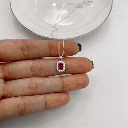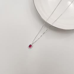 Colar pingente zircônia retangular cereja detalhe torcido 10mm 45cm