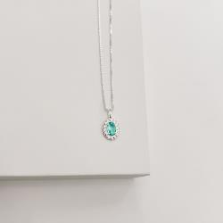 Colar pingente zircônia oval acqua detalhe torcido 10mm 45cm | Mya Prata