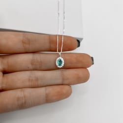 Colar pingente zircônia oval acqua detalhe torcido 10mm 45cm