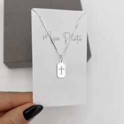 Colar pingente placa cruz vazada 14mm 45cm | Mya Prata