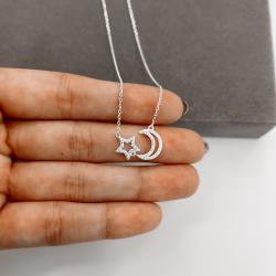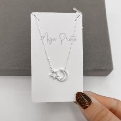 Colar entremeio estrela e lua vazadas cravejadas 20mm 40+5cm | Mya Prata