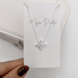 Colar entremeio flor cravejada 15mm 40+5cm | Mya Prata