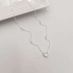 Colar entremeios zircônias coração 8mm e redondas 3mm 40+5cm