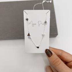Colar entremeio corações lisos e cravejados 40+5cm | Mya Prata