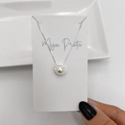 Colar pérola com cravejado 10mm caixa alta 40cm | Mya Prata