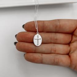 Colar pingente medalha dupla face Santo Antônio e cruz 16mm corrente cadeadinho 45cm | Mya Prata