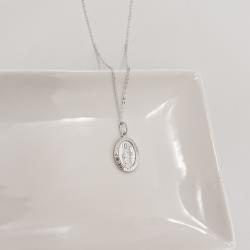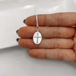 Colar pingente medalha dupla face São Judas Tadeu e cruz 16mm corrente cadeadinho 45cm | Mya Prata