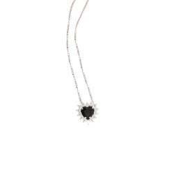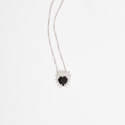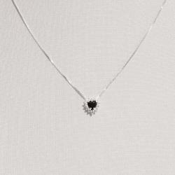 Colar zircônia coração ônix com cravejado 9mm 45cm | Mya Prata