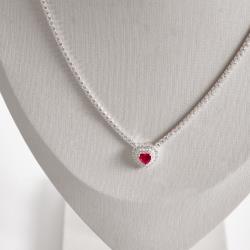 Colar Riviera 2.0 entremeio zircônia coração rubi com cravejado 11mm 40+5cm | Mya Prata
