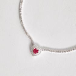 Colar Riviera 2.0 entremeio zircônia coração rubi com cravejado 11mm 40+5cm