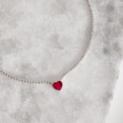Colar Riviera 1.9 com zircônia coração rubi 7mm 40+5cm