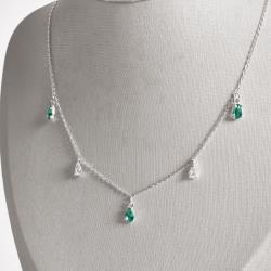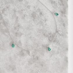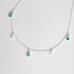 Colar pingentes zircônias gota cristal 5mm e acqua 6mm corrente grumet 45cm | Mya Prata