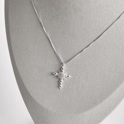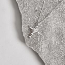 Colar cruz trabalhada com cravejado 22mm 45cm | Mya Prata