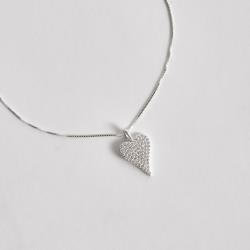 Colar pingente coração alongado cravejado 17mm 45cm | Mya Prata
