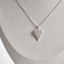 Descrição: Colar pingente coração alongado cravejado 17mm 45cm fabricado(a) em prata