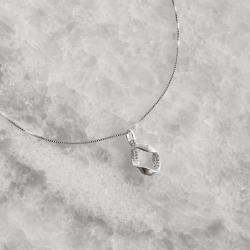 Colar pingente oval vazado com interior cravejado 13mm 45cm | Mya Prata