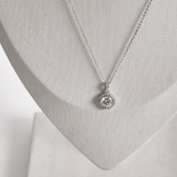 Colar pingente moissanite cristal 6.5mm com cravejado corrente cadeadinho 45cm ródio | Mya Prata