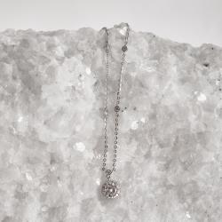 Colar entremeios e pingente moissanite 6.5mm com cravejado corrente cadeadinho 40+5cm ródio | Mya Prata