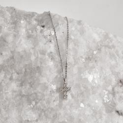 Colar pingente cruz moissanite 12mm corrente cadeadinho 45cm ródio | Mya Prata