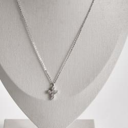 Colar pingente cruz moissanite 12mm corrente cadeadinho 45cm ródio
