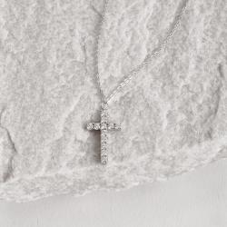 Colar pingente cruz moissanite 21mm corrente cadeadinho 45cm ródio | Mya Prata