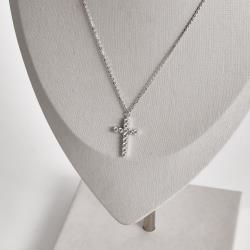 Colar pingente cruz moissanite 21mm corrente cadeadinho 45cm ródio
