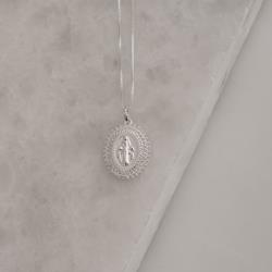 Colar pingente medalha Nsa. Sra. das Graças borda cravejada 21mm 45cm | Mya Prata