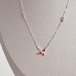 Colar entremeios zircônias e flor cristal e rubi 9mm corrente cadeado 40+5cm | Mya Prata