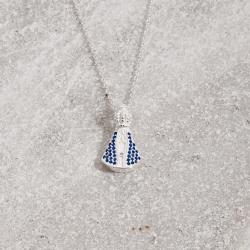 Colar Nsa. Sra. Aparecida cravejada azul 18mm corrente cadeadinho 45cm | Mya Prata