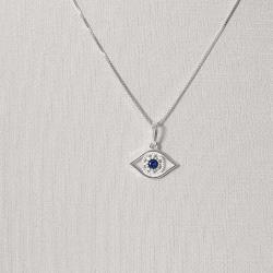Colar pingente olho com zircônia azul 15mm 45cm | Mya Prata