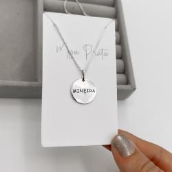 Colar pingente medalha mineira 40+5cm | Mya Prata