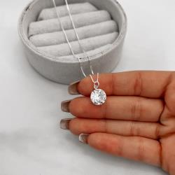 Colar pingente zircônia redonda 10mm 45cm | Mya Prata