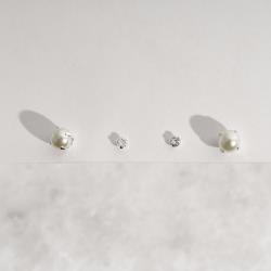 Dupla zircônia 3mm e pérola 6mm | Mya Prata