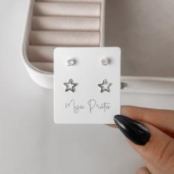 Dupla zircônia 4mm e estrela vazada 8mm | Mya Prata