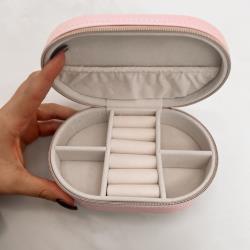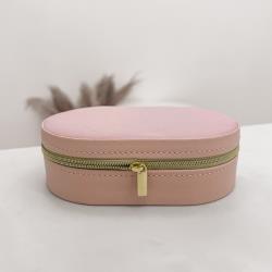 OUTLET Porta-joias oval rosa 14x9x4cm zíper dourado