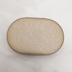 OUTLET Porta-joias oval champanhe 14x9x4cm zíper dourado